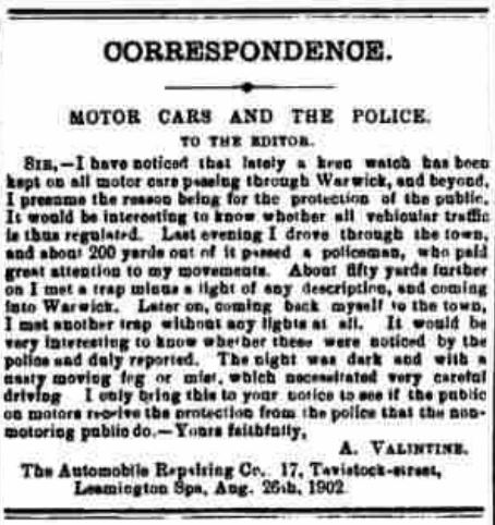 Automobile Repairing Co – Tavistock Street, Leamington Spa, owned by Ambrose Valentine, born 1874 in Milverton but moved to Croxton House, 27 Sherbourne Place in Leamington Spa.