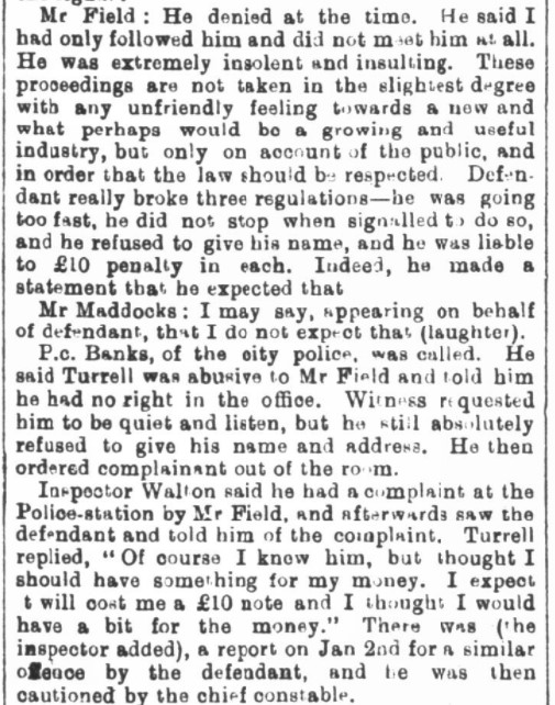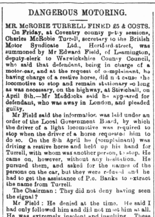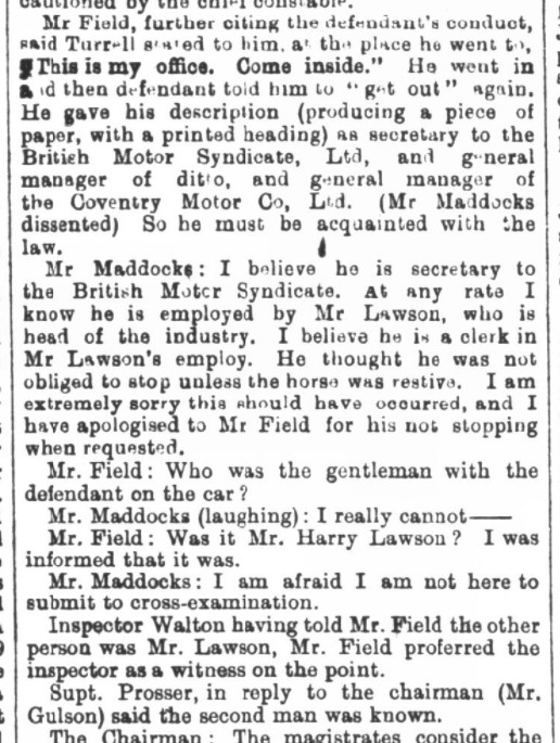 And a flying visit by Mr Harry Lawson and Charles McRobie Turrell.