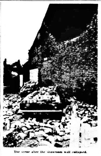 A 40ft of the garage wall collapses onto cars and onto both Martin Pace and John Shorney who had serious head and leg injuries and was kept in at Warwick Hospital.
