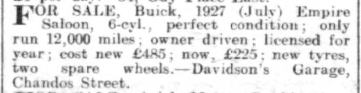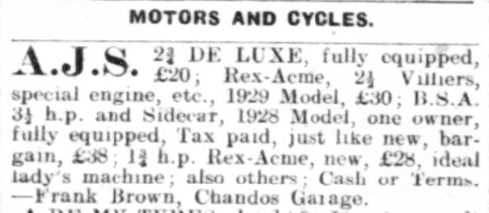 I’ve also found adverts for a Frank Brown, Chandos Garage, sell motorcycles and a Davidsons Garage, Chandos Street. Both were advertising in the Courier on April 26 1929.