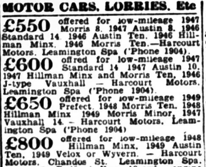 It would be seen that a Harcourt Motors may have been at the premises in the 1950s as I have found adverts going back to Sept 1950 for low mileage second-hand cars and up 31 Oct 1964.