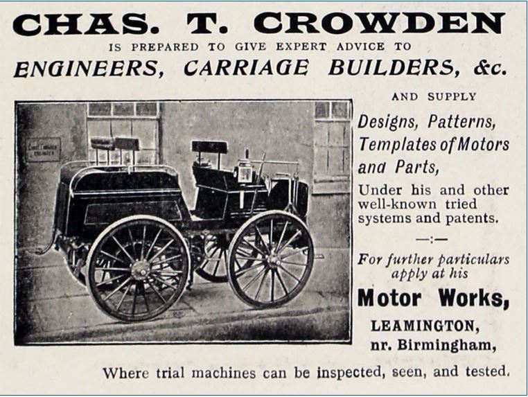 In 1897 he moves to Leamington living at Vernon Lodge, 10 Eastnor Grove, Leamington and acquired the old Mulliner carriage works in Packington Place and is a motor car manufacturer of the Leamington Motor Car Works.