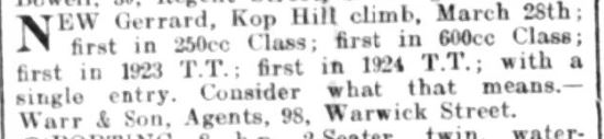 D. R.’s Advert for New Gerrad motocycle – April 17 1925