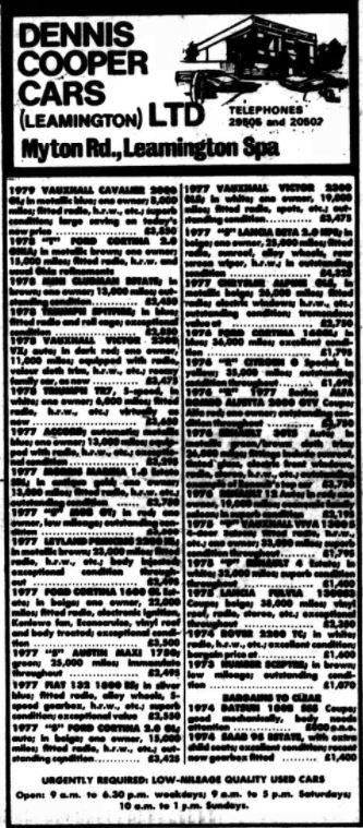 The last advert for Dennis Cooper Cars was on 28 December 1979.