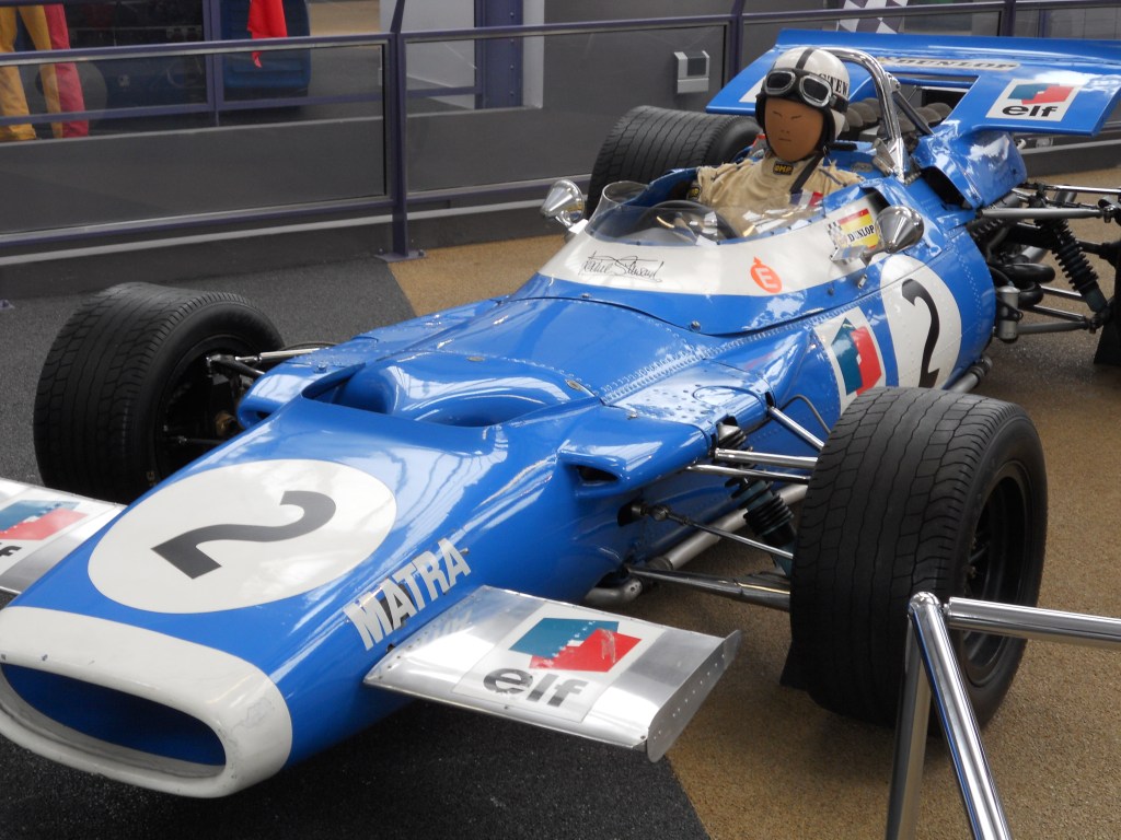 In the museum, they had the range of cars that Matra produced over time and the racing cars that Graham Hill won the Le Mans with the Matra MS670 in 1972 and the F1 MS80 that Jackie Stewart drove and won the World Championship with, in 1969.