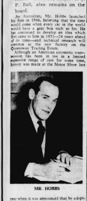 Born in 1902,Mr Howard Hobbs from Adelaide, South Australia, designed the Mecha-Matic Automatic Gearbox, which he had been working on for twenty years.