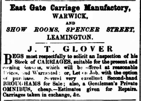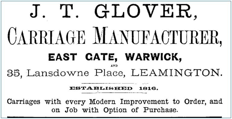 James Thomas Glover of East Gate, Warwick and 35 Lansdowne Place (which is now Upper Parade), Leamington.