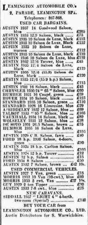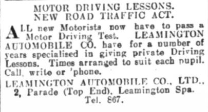 Leamington Automobile Co now has an advert in 1937 providing private driving lessons.