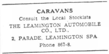 Also in 1937, they are South Warwickshire’s distributor for Austin and also selling the new Siddall Caravan manufactured by Siddall Caravans Ltd, Old Bath Road, Cheltenham and first shown in 1936.