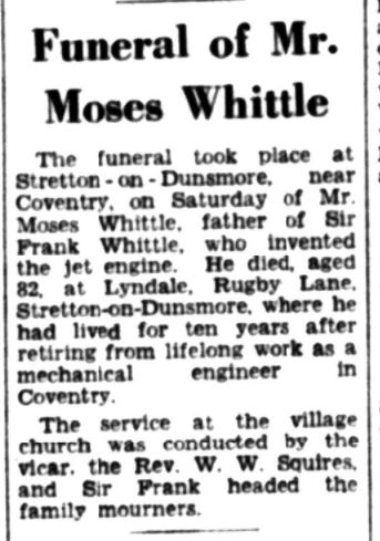 Frank Whittle (Sir) born on 1 Jun 1907 in Earlsdon, Coventry had two children, Ian Whittle and David Whittle.