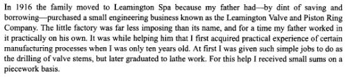 In 1916 he purchased the workshop in Clinton Street called the Leamington Valve and Piston Ring Company.