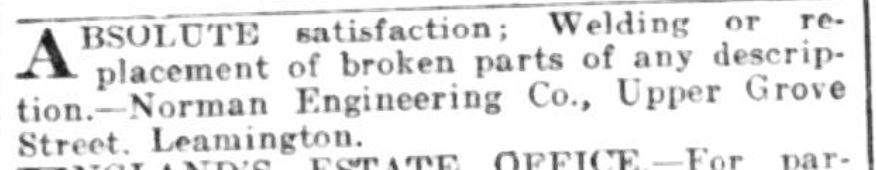 In 1919 has started the Norman Engineering Company in Upper Grove Street, Leamington Spa.