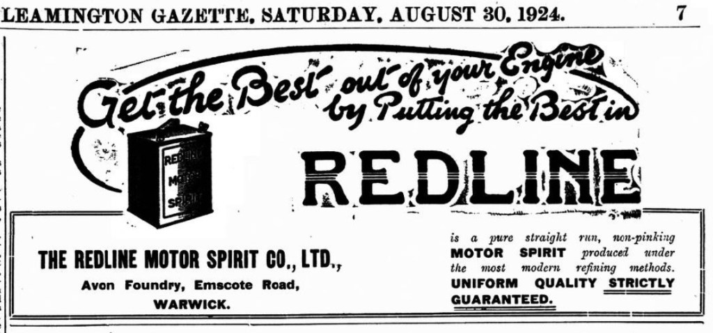 1924 – 1930? Suppliers of Redline Motor Spirit, the Avon Foundry, Emscote Road, Warwick.