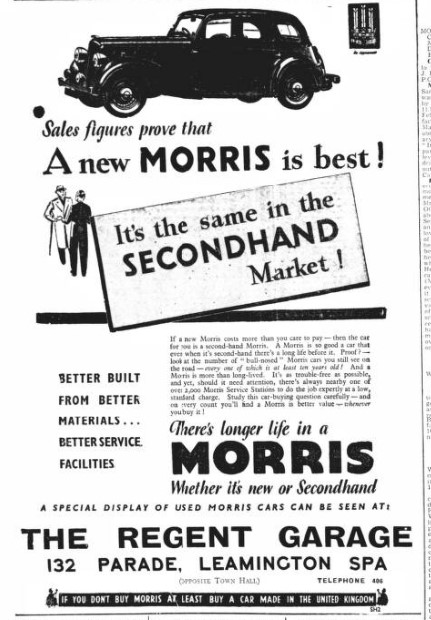 In 1925 The Regent Garage are agents for Sunbeam, Morris-Oxford and Morris-Cowley Cars and Bean Cars of Dudley.